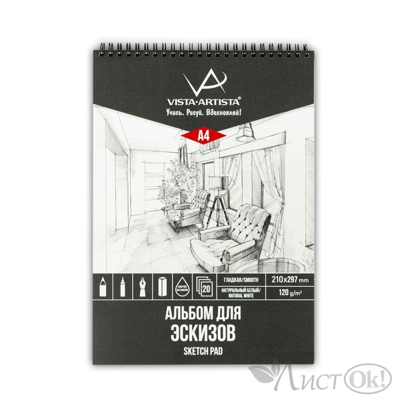 Альбом для эскизов 20 л. на спирали A4 120 г/м2 21 х 30 см DSN-A4 VISTA-ARTISTA