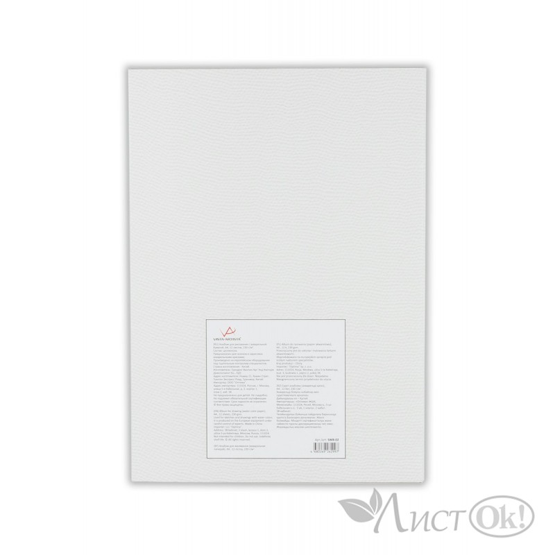 Альбом для рис. акварелью 12л. A4 21х29.7см "Чеснок" белая бумага крупнозернистая 230 г/м2, склейка с одной стороны SWB-02 "VISTA-ARTISTA"