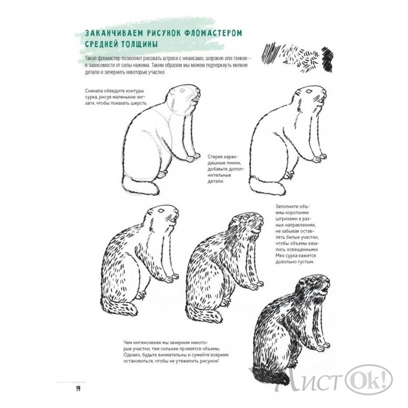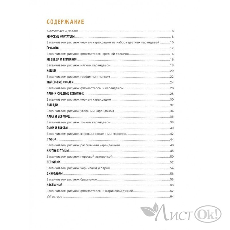 Скетчбук начинающего художника А5+ (196х260 мм) 64л. "Создаем наброски животных и птиц шаг за шагом" ISBN 978-5-00141-321-9 Контэнт