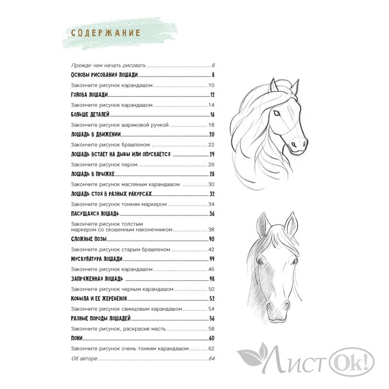 Скетчбук начинающего художника А5+ (196х260 мм) 64л. "Создаем наброски лошадей шаг за шагом" (белая обл.) ISBN 978-5-00241-199-3 Контэнт