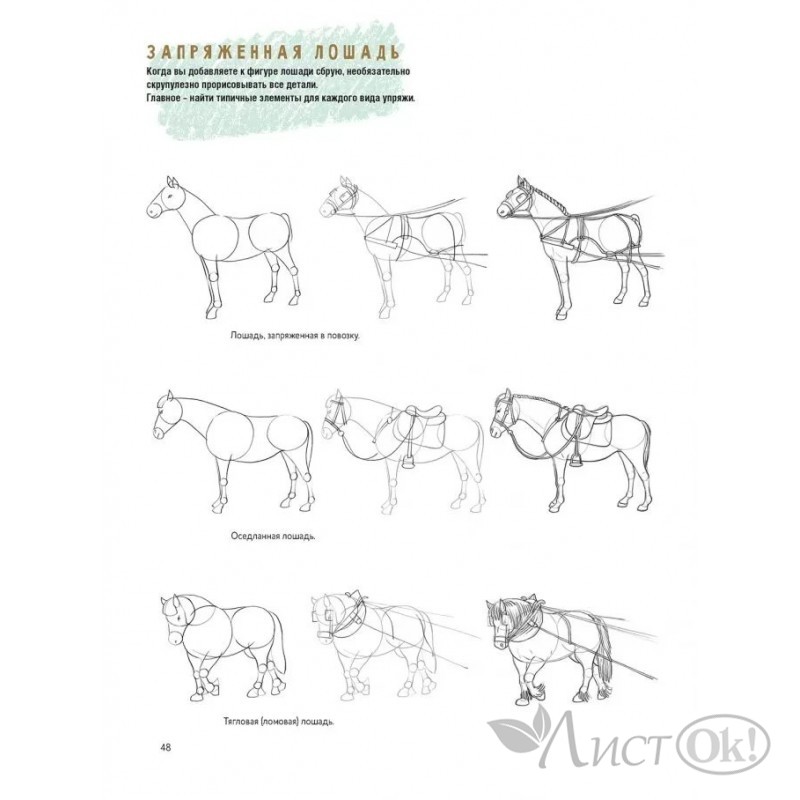и изображениям лошадей в упряжи. Также в книге вы встретите представителей разных пород лошадей,