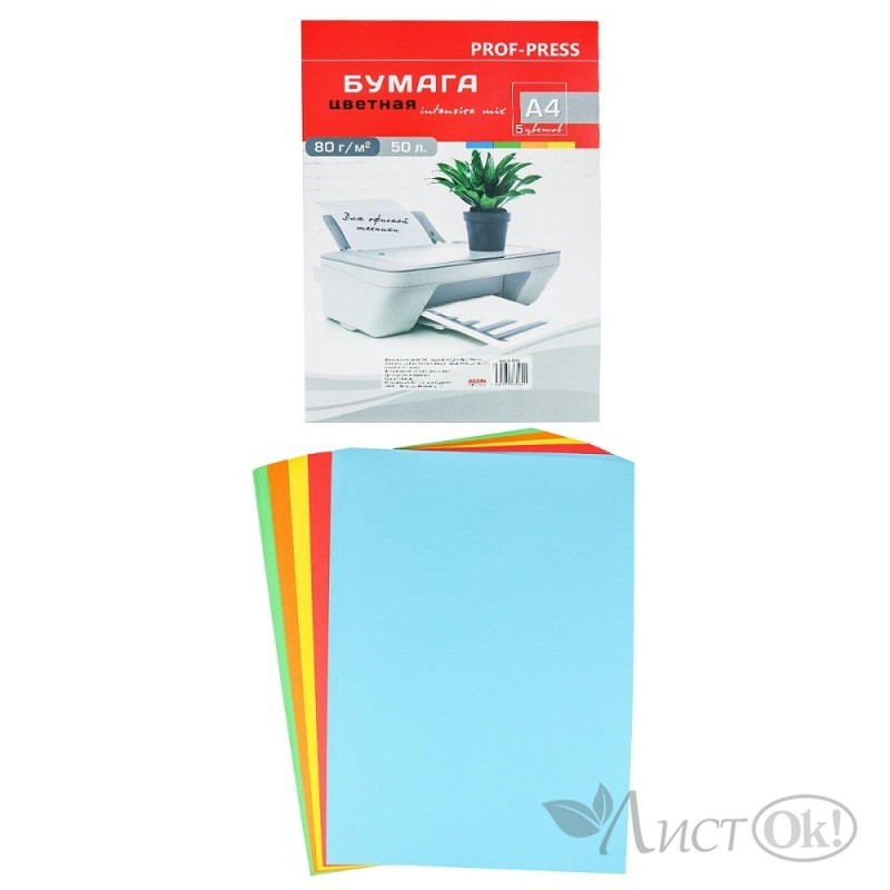 Бумага для копир.тех. А4 50л, 80г, "INTENSIVE" АССОРТИ 5цв. по 10л. Б-3562 Проф-Пресс