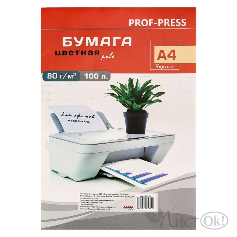 Бумага для копир.тех. А4 100л, 80г, "PALE" ПАСТЕЛЬ-ПЕРСИК Б-5751 Проф-Пресс