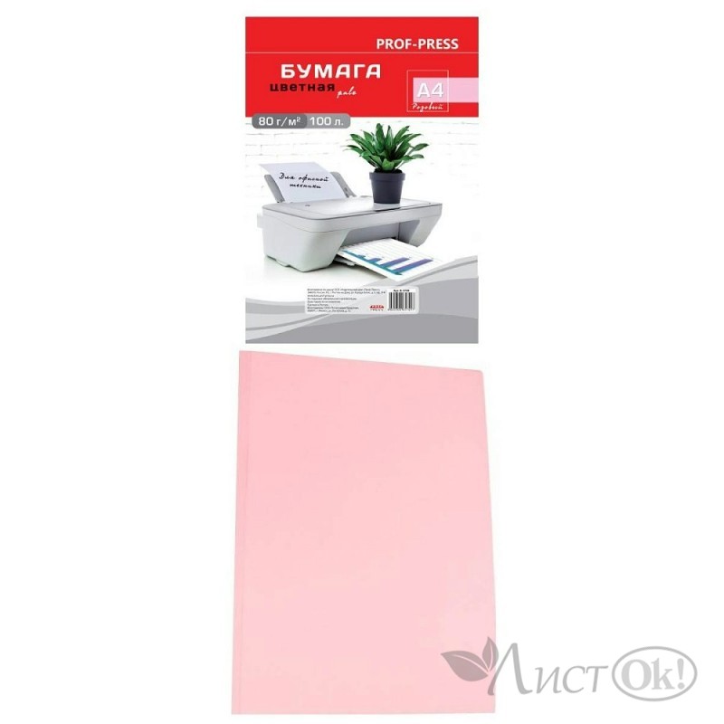 Бумага для копир.тех. А4 100л, 80г, "PALE" ПАСТЕЛЬ-РОЗОВЫЙ Б-5749 Проф-Пресс