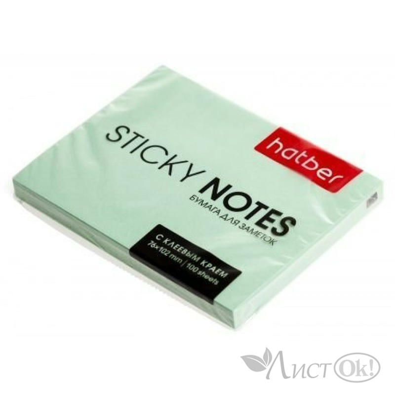 Бумага самокл. д/зап. 100л 76х102мм с клеевым краем "ПАСТЕЛЬ Зеленая" в индив.упак. LS_10207 Hatber