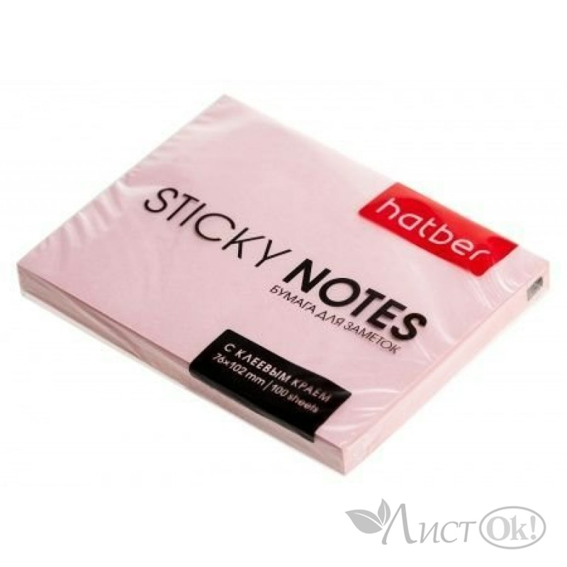 Бумага самокл. д/зап. 100л 76х102мм с клеевым краем "ПАСТЕЛЬ Розовая" в индив.упак. LS_10218 Hatber