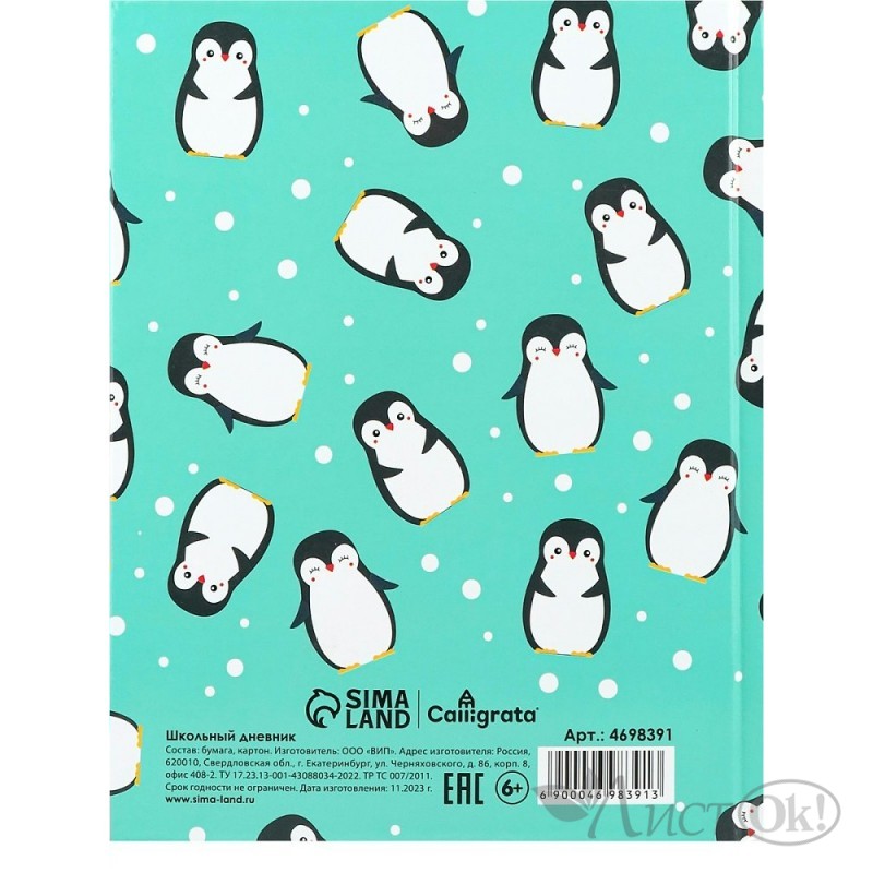 Дневник для мл.кл (1-4) 48л, 7БЦ, глянц/лам, Calligrata "Пингвины. Паттерн" 4698391 Проф-Пресс