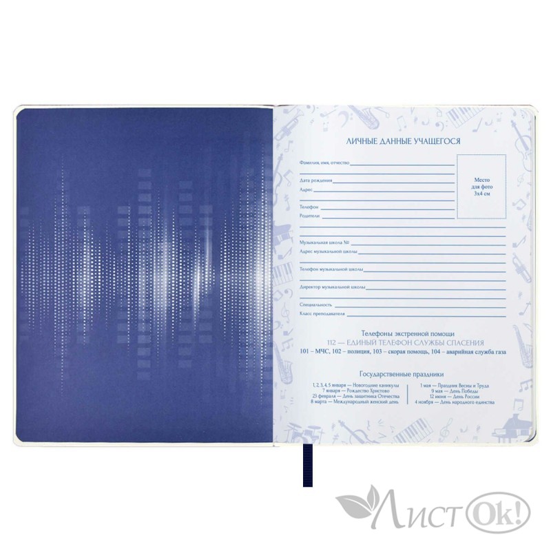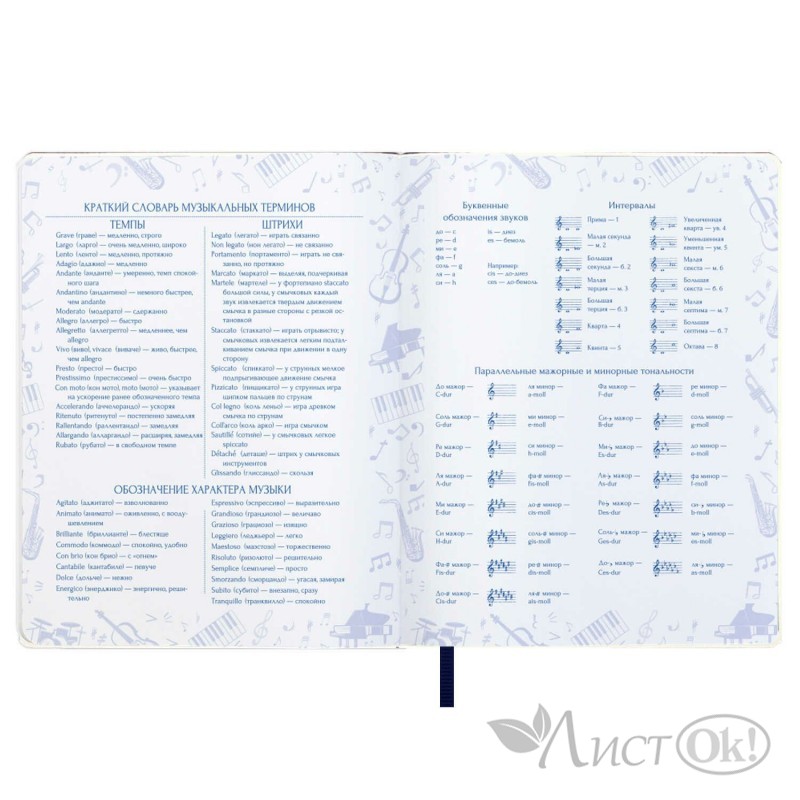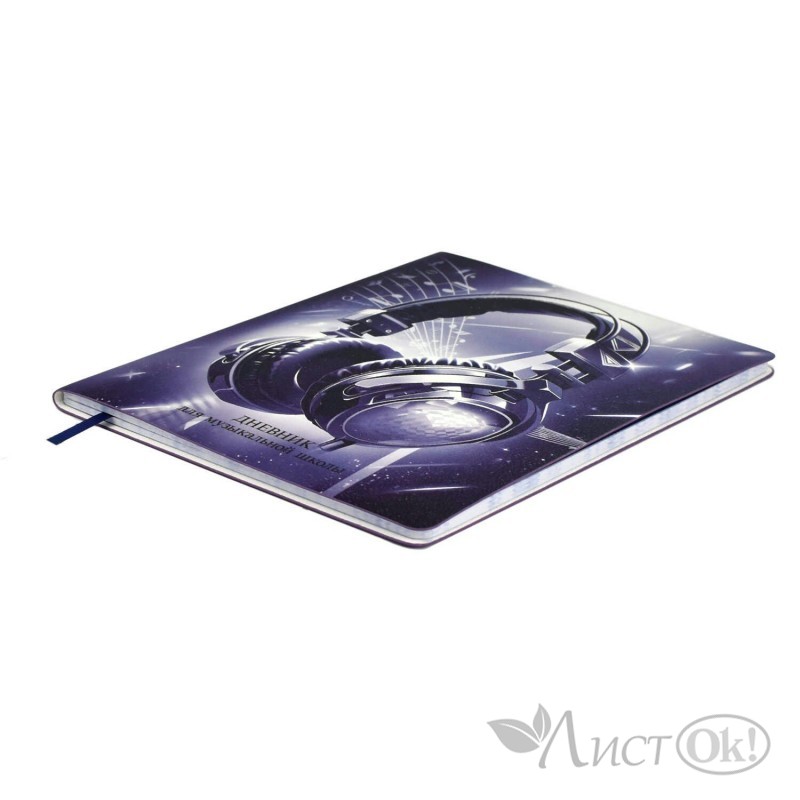 невник для музыкальной школы арт. 66482 / 15 НАУШНИКИ С МУЗЫКОЙ (кожзам: А5+; мягкий переплёт, запаянный край, материал обложки: искусственная кожа "Наппа"; декор: полноцветная печать; способ крепления блока: ниткошвейный; вн. блок: 48 л., белый офсет 80 г/м?, печать в одну краску, справочный материал: универсальная шпаргалка; закладка: одно ляссе; форзац: печать в одну краску; индивидуальная упаковка: ПЭТ-пакет)