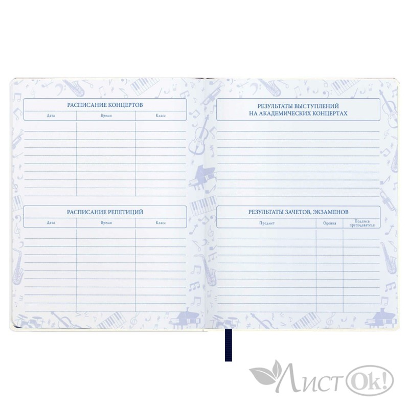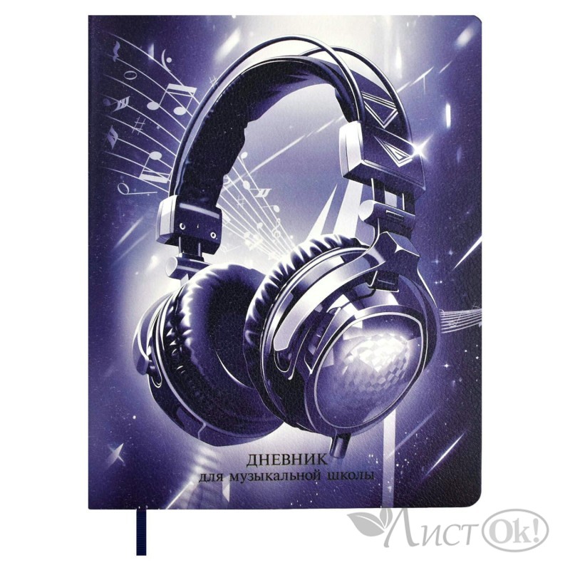 Дневник муз.школы А5+, 48л., мягкий переплёт, запаянный край, искусственная кожа "Наппа",15 НАУШНИКИ С МУЗЫКОЙ 66482 Феникс+