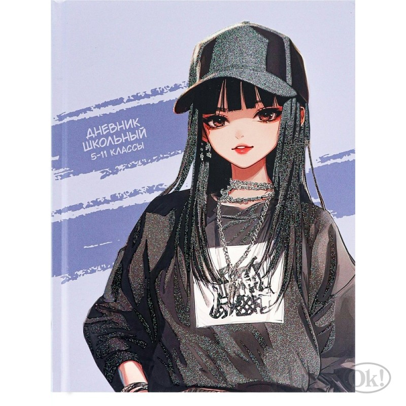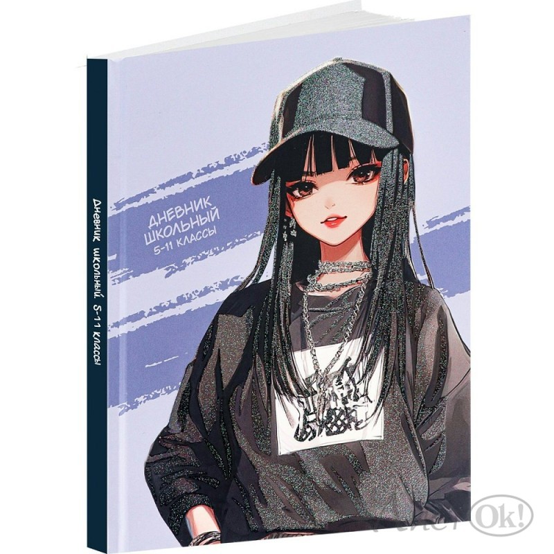 Дневник для ст.кл.(5-11) 48л. обл. 7БЦ СТИЛЬНАЯ ДЕВУШКА В КЕПКЕ, глиттер, Д48-3872 Проф-Пресс