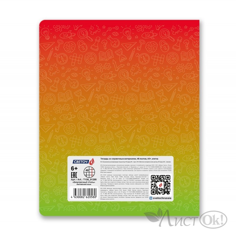 Тетрадь предм. А5 48л, кл., скр. "Безупречный стиль" Английский язык со справочным материалом Т139 01285 Светоч
