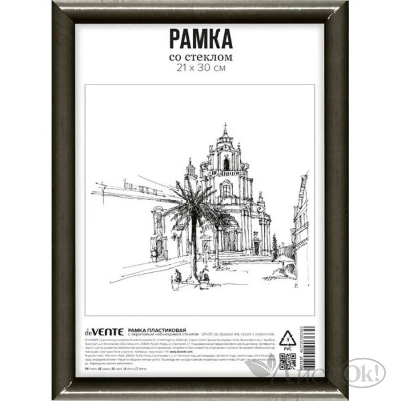 Рамка пластиковая "deVENTE" 21x30 см, формат A4, серия 2, стекло, задняя панель - переплетный картон..