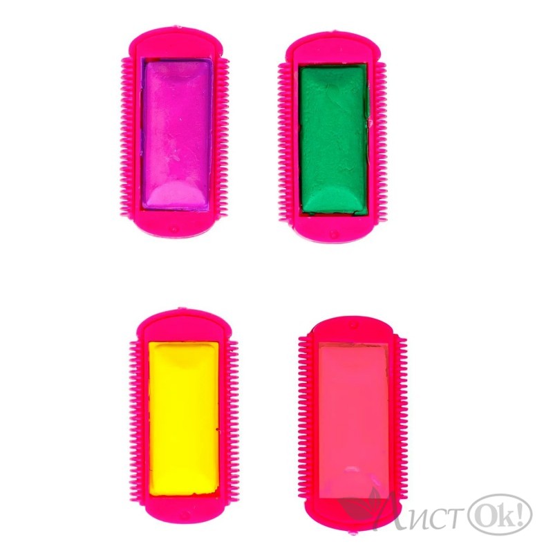 С помощью этого набора можно поэкспериментировать с цветом волос! Достаточно лишь зажать прядь между двумя цветными аппликаторами-щипцами и провести сверху вниз. Новый цвет волос готов! Смывается водой с мылом. В наборе 4 безопасных цветных мелка для волос.
