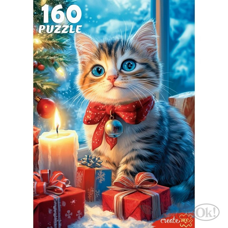 Пазлы 160 эл. "РОЖДЕСТВЕНСКИЙ КОТЕНОК" Х160-7606 Рыжий кот
