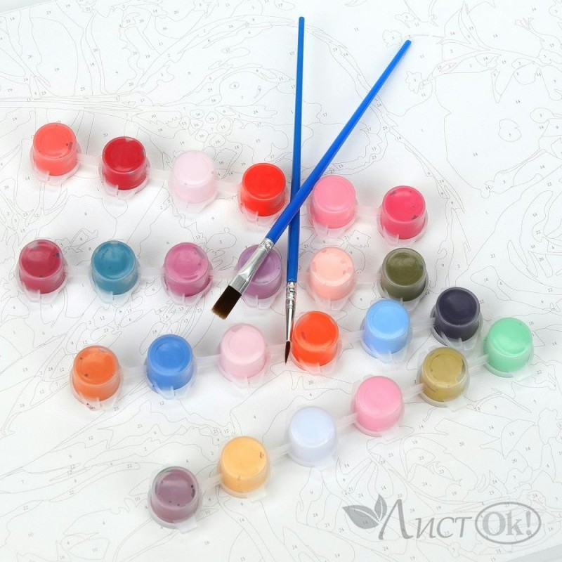 - всё необходимое в комплекте: холст на подрамнике 30 х 40 см, набор акриловых красок, 2 кисти, комплект креплений
