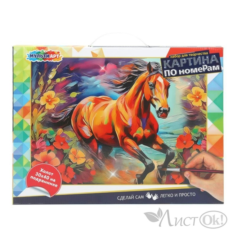 Картина по номерам 30х40 см на подрамнике "Лошадь в цветах" CANV30X40-117529 МУЛЬТИ АРТ