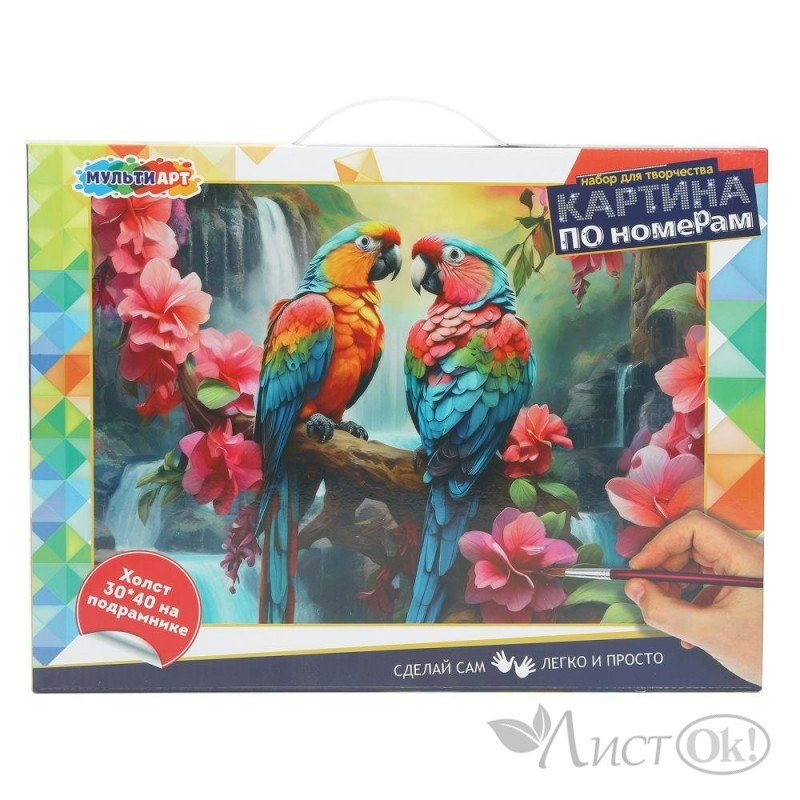 Картина по номерам 30х40 см на подрамнике "Попугаи и водопад" CANV30X40-118477 МУЛЬТИ АРТ