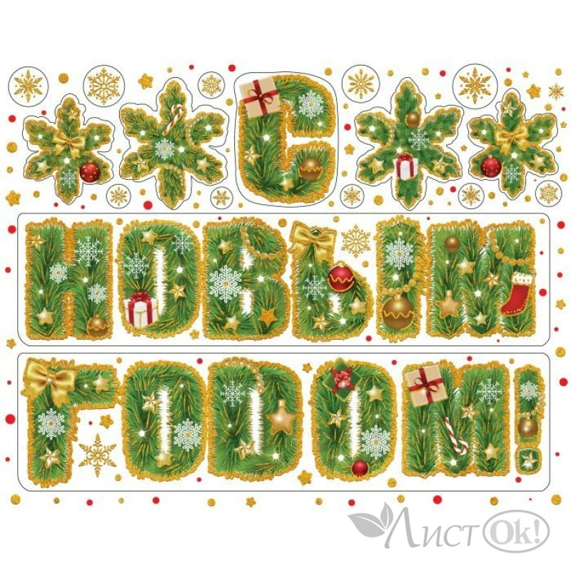 Наклейки - Новогодние на окна "Новогодняя надпись" из ПВХ пленки, глиттер, 30х38см + раскраска 86034 Феникс Презент
