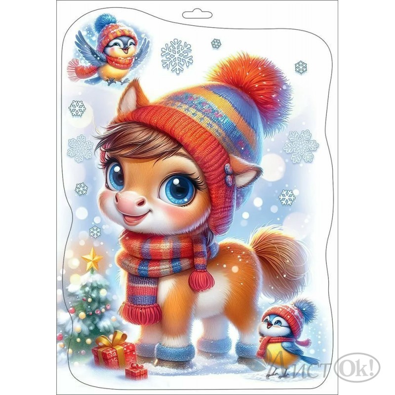 Наклейка двусторонняя "Пони в шапочке" 332х237мм, УФ-лак глянцевый; белила 5.0001469 Праздник