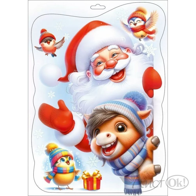 Наклейка двусторонняя "Дед Мороз и пони" 332х237мм, УФ-лак глянцевый; белила 5.0001470 Праздник