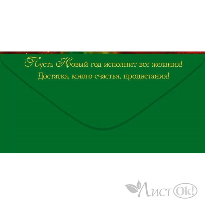 Конверт для денег "Счастливого Нового года!" 168х84мм, блестки в лаке зеленые; 9.0001262 Открытая планета