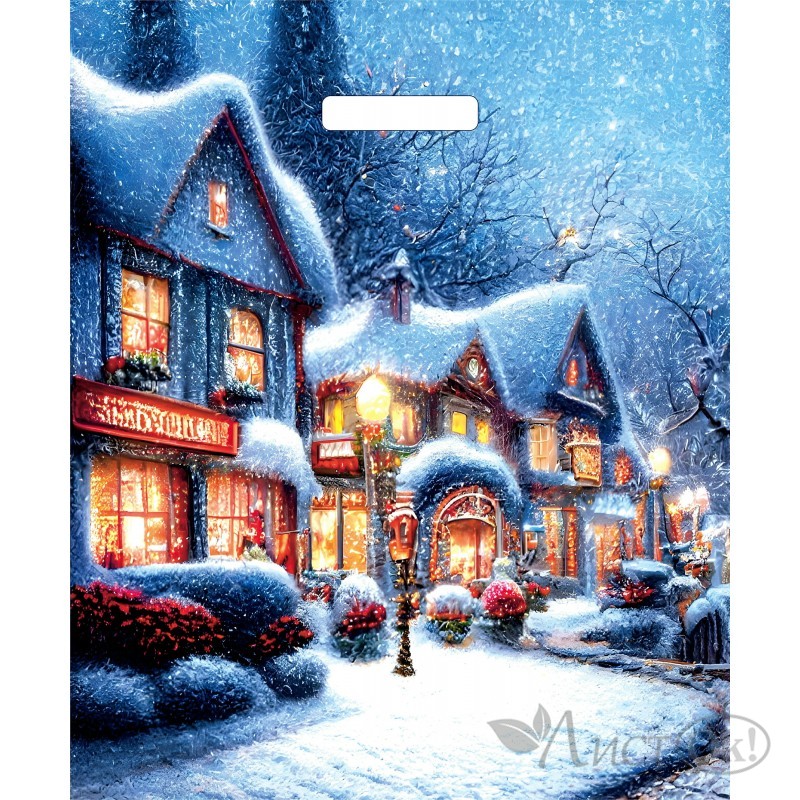 Пакет с прорубной ручкой 38х45+3см "Рождественская ночь" НГ, 60мкм ПЭ глянцевый ВУР56614 Артпласт