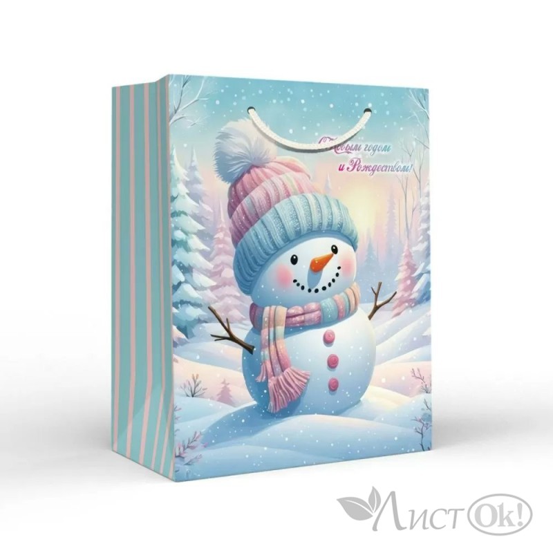 Пакет подарочный "Пудровый снеговик" М (180х227х100 мм) ламинация матовая 15.16.02346 Хорошо