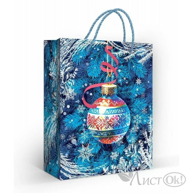Подарочный пакет «Новогодние шары» в размере М поможет красиво и празднично упаковать любой новогодн..