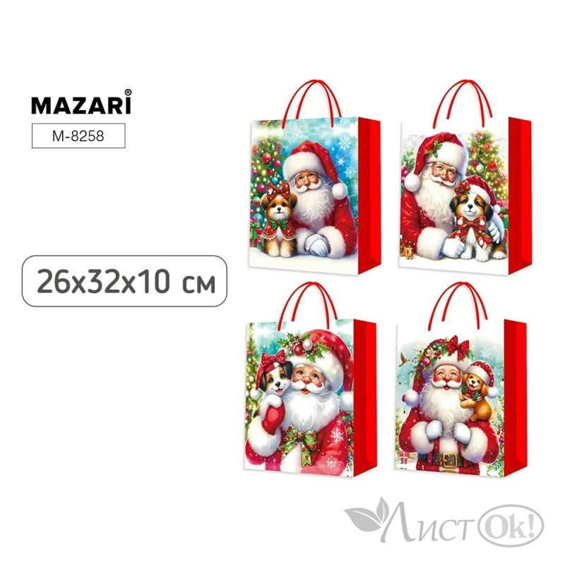 Пакет подарочный бумажный НГ СКАЗКА 26*32*10 см, 4 дизайна в ассортименте M-8258 MAZARI