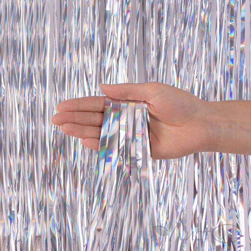 Занавес из дождика 1*2м Электрик, Серебро, Голография, 100-200 6014369 Волна веселья