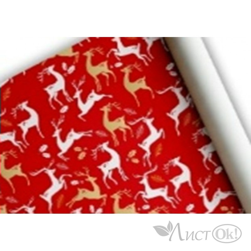 Бумага упаковочная 70х100см «Белые и золотые олени» 1шт. УБН-033