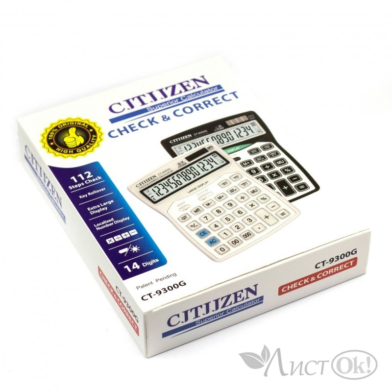 Калькулятор Настольный 14 разрядов, 150*200*25 мм, двойное питание, черный/серый, "CT-9300G", (+ батарейка) AL6337 Alingar