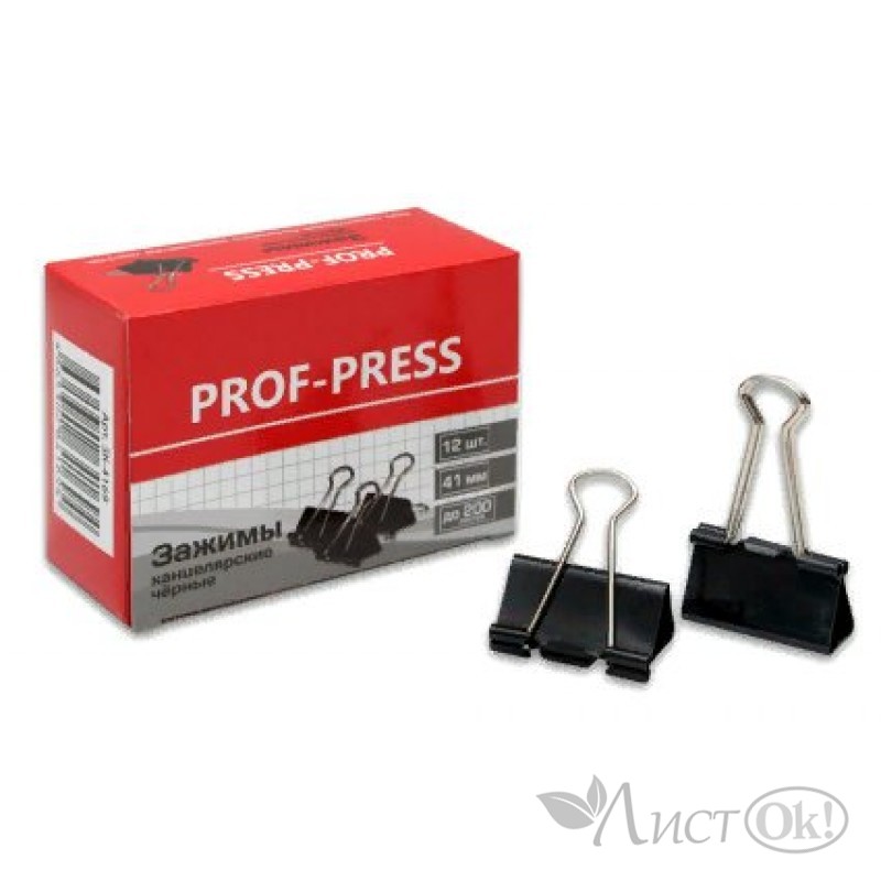 Зажим для бумаг 41мм, ЧЕРНЫЙ в карт. коробке ЗК-4169 Проф-Пресс
