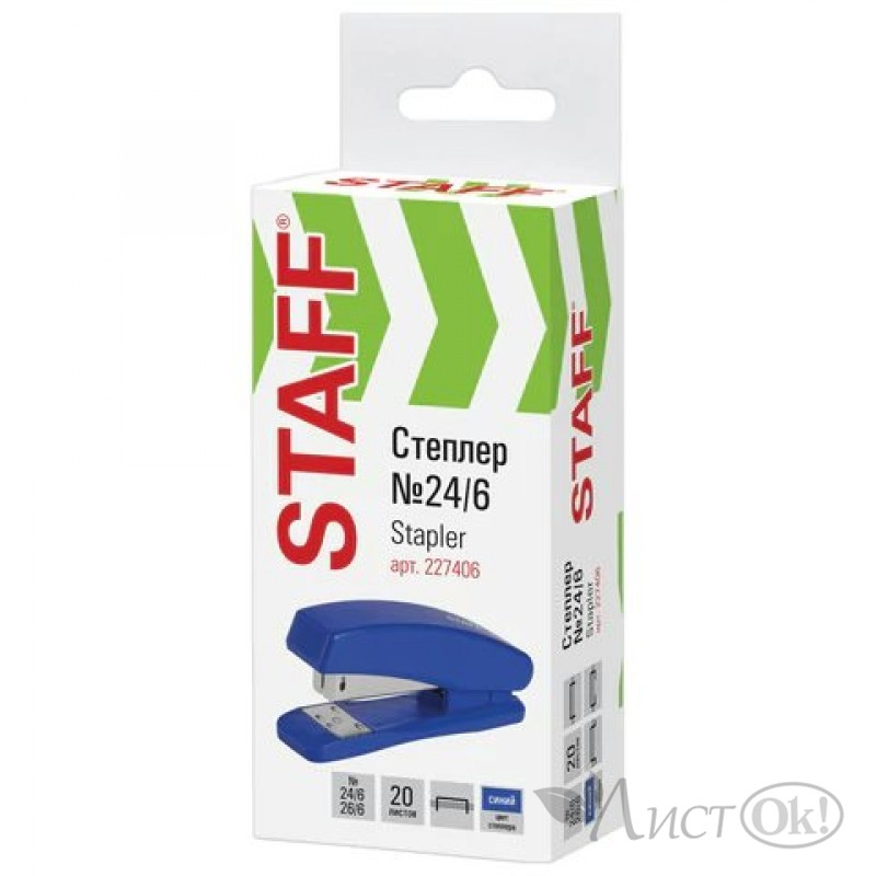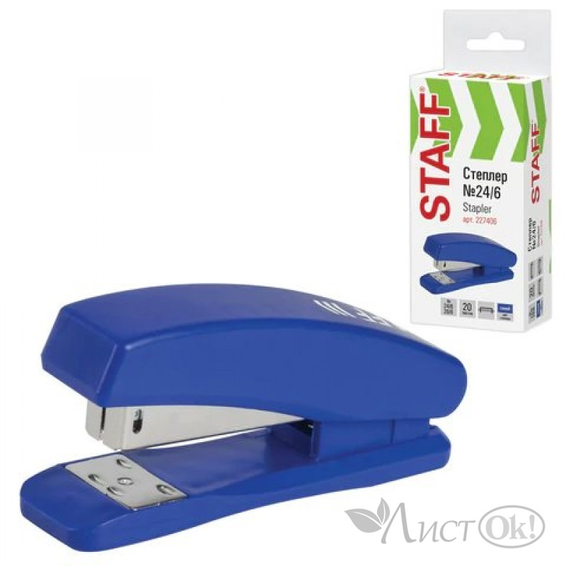 Степлер №24/6, 26/6, на 20л. "Basic", синий, 227406 STAFF