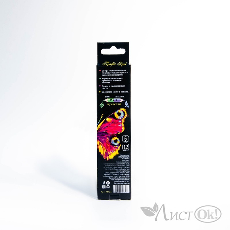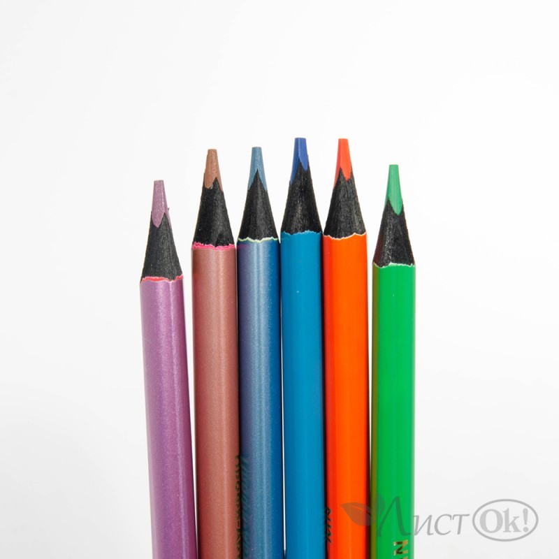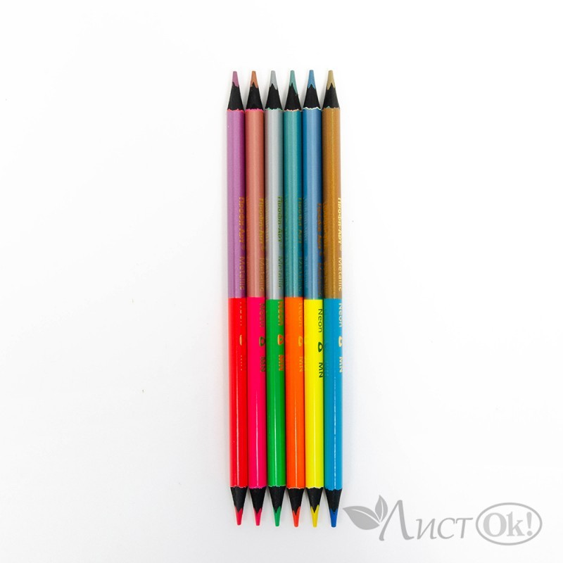 Набор цветных карандашей двухцветных неон+металл, торговой марки "Профи-Арт" MN-6 в яркой картонной упаковке с европодвесом. У карандашей прочная структура грифеля, устойчивая к ломкости.