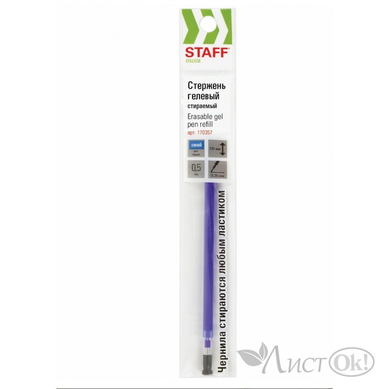 Стержень гель стираемый College GP-109R, 130мм, СИНИЙ, узел 0,5мм, линия 0,35мм, 170357 STAFF