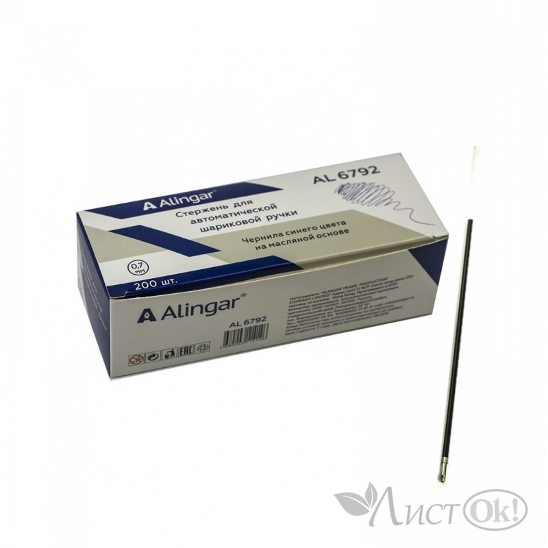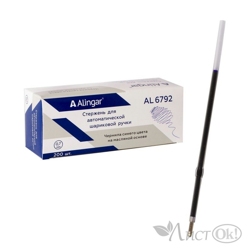 Стержень шариковый с ушками 0,7 мм., 106 мм, синий, для автоматической ручки AL6792 Alingar