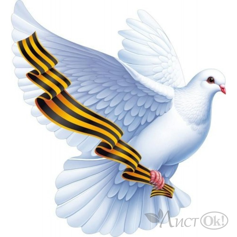 Украшение на скотче "Голубь левый с георгиевской лентой" 200х190мм, УФ-лак глянцевый 9.0001930 Открытая планета