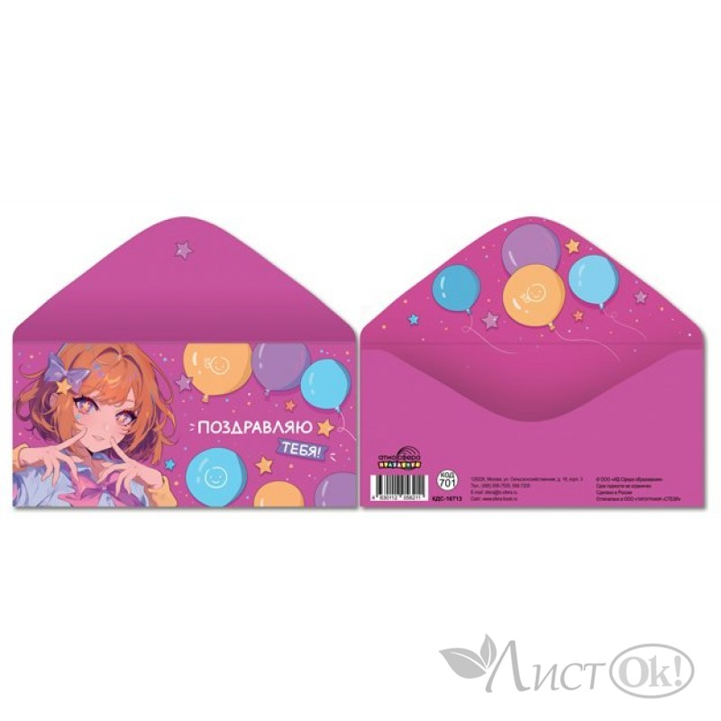 Конверт для денег "Поздравляю тебя!" 170х82 мм, КДС-16713 Сфера