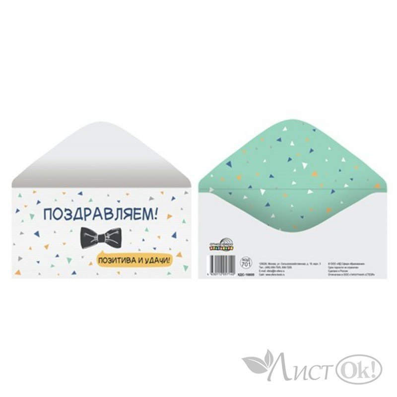 Конверт для денег "Поздравляем! Позитива и удачи!" 170х82 мм, КДС-16800 Сфера