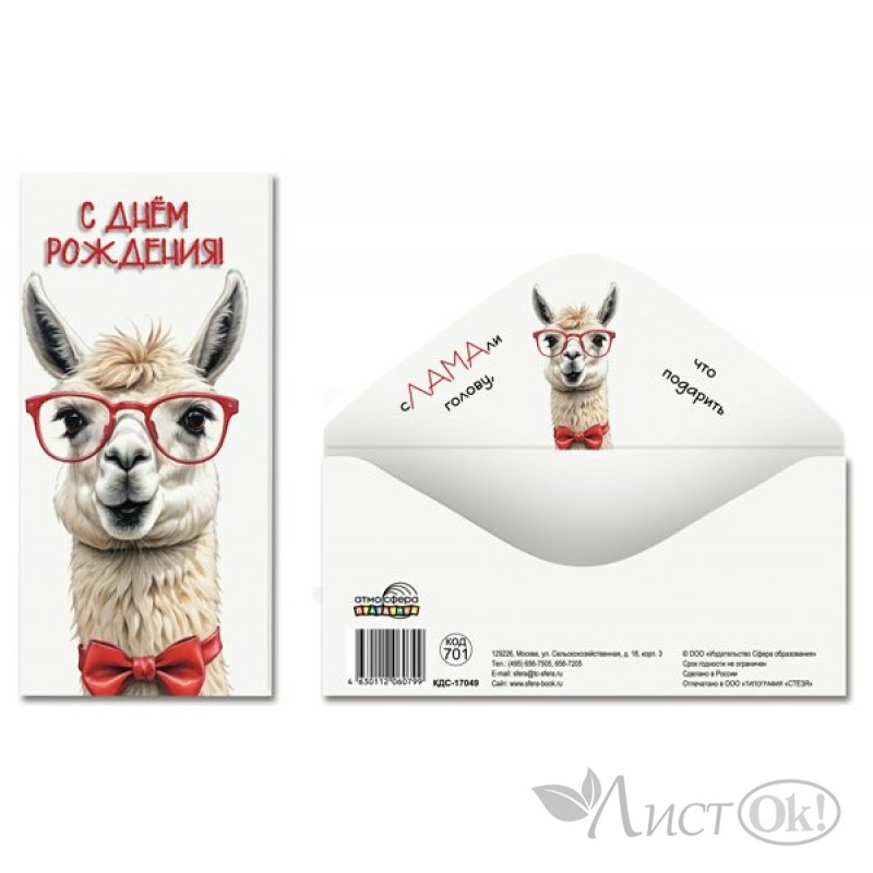Конверт для денег "С Днем рождения!" 170х82 мм, КДС-17049 Сфера