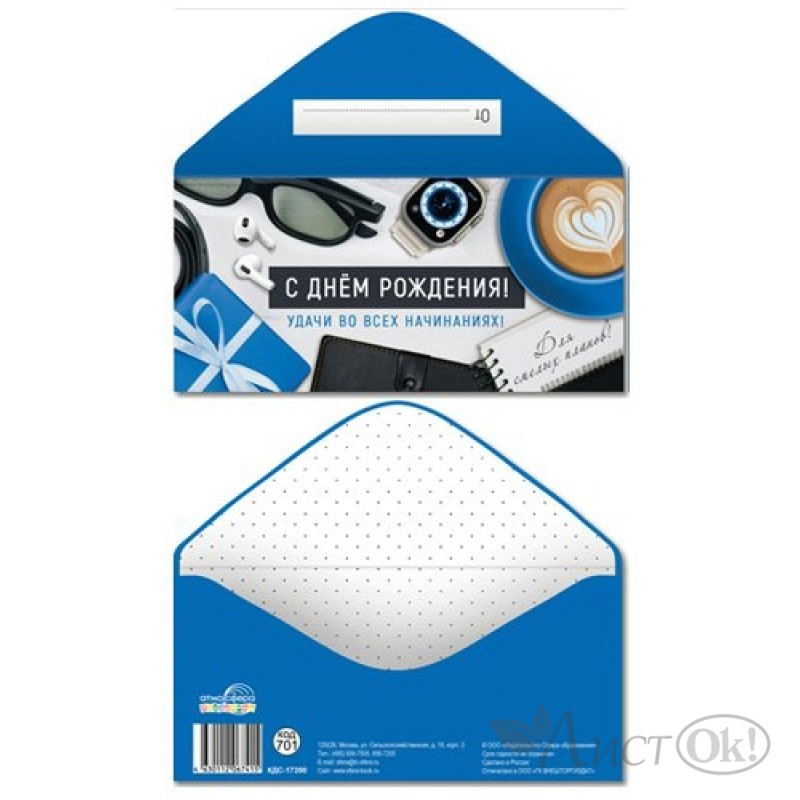 Конверт для денег поможет красиво оформить подарок другу, коллеге или близкому человеку. Конверт выполнен из плотного картона, поэтому надолго сохранит свой нарядный внешний вид.