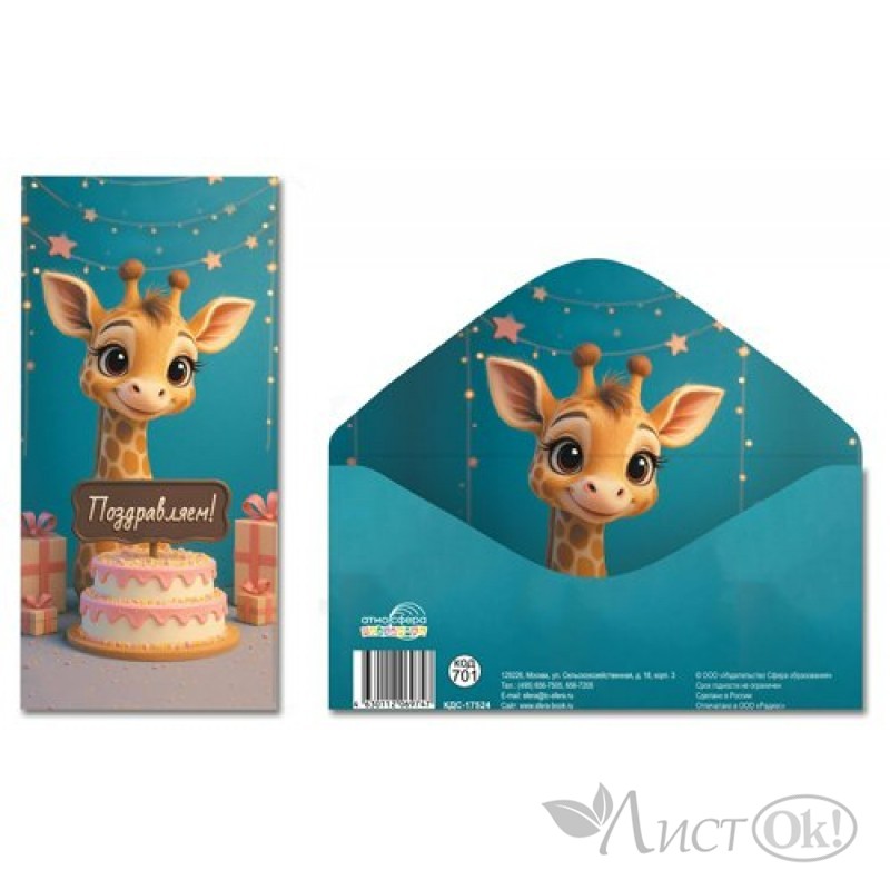Конверт для денег поможет красиво оформить подарок ребенку. Конверт выполнен из плотного картона, поэтому надолго сохранит свой нарядный внешний вид.
