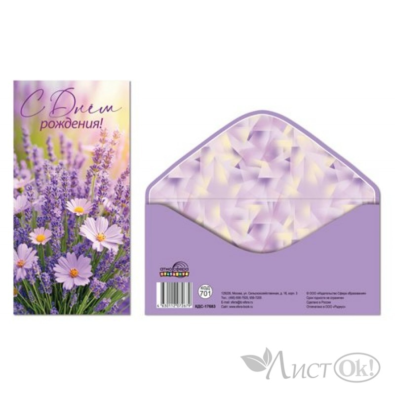 Конверт для денег "С Днем рождения!" 170х82 мм, КДС-17683 Сфера