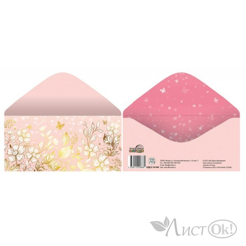 Открытка-конверт для денег, украшенная отделкой из золотой фольги, поможет красиво оформить подарок подруге, коллеге или близкому человеку. Конверт выполнен из плотного картона, поэтому надолго сохранит свой нарядный внешний вид.