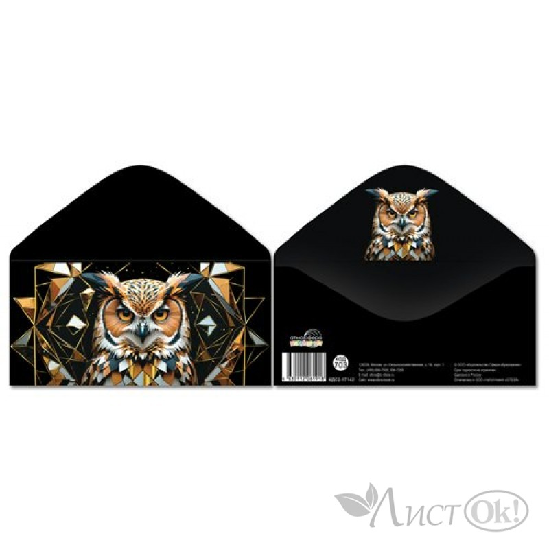 Конверт для денег "Без надписи" Сова 170х82 мм, золотая фольга КДС2-17142 Сфера