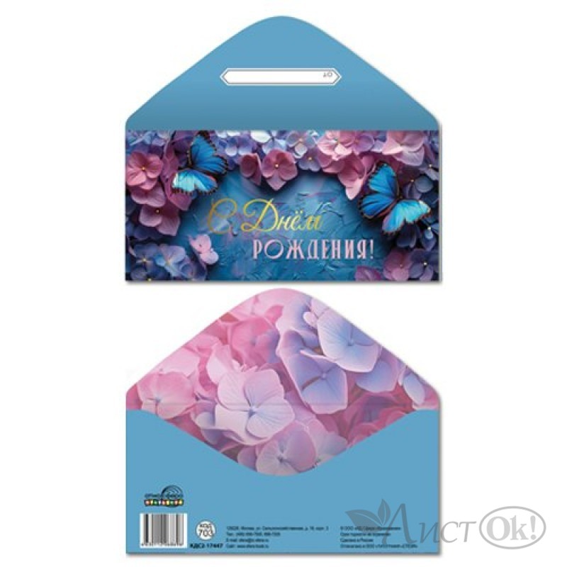 Конверт для денег "С Днем рождения!" 170х82 мм, золотая фольга, КДС2-17447 Сфера