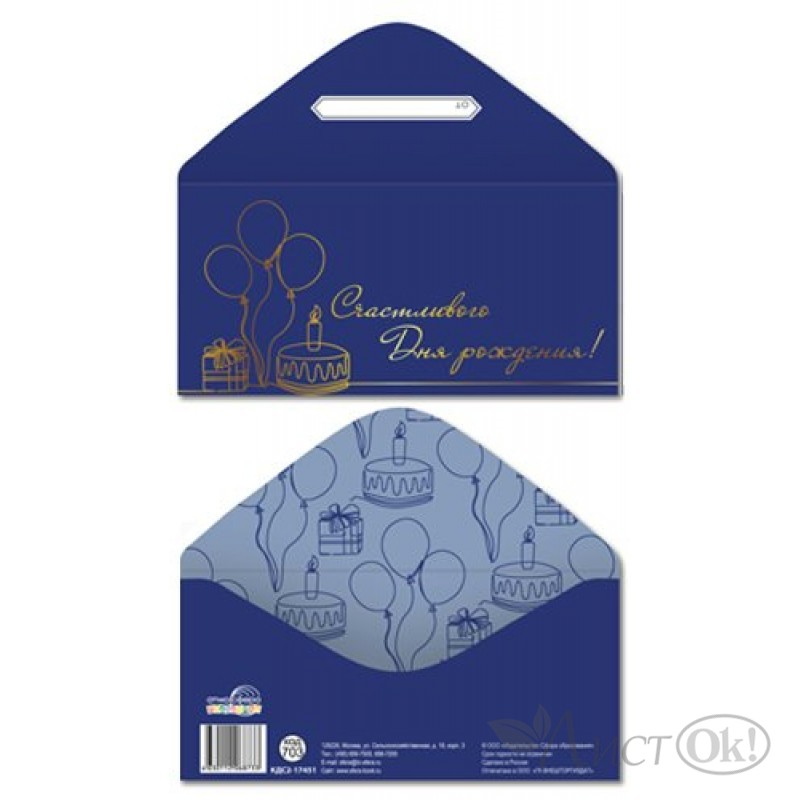 Конверт для денег "Счастливого дня рождения!" 170х82 мм, золотая фольга КДС2-17451 Сфера