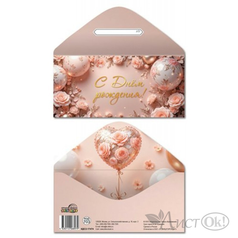 Открытка-конверт для денег, украшенная отделкой из золотой фольги, поможет красиво оформить подарок подруге, коллеге или близкому человеку. Конверт выполнен из плотного картона, поэтому надолго сохранит свой нарядный внешний вид.