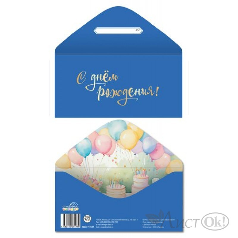 Конверт для денег "С Днём рождения!" 170х82 мм, золотая фольга, КДС2-17627 Сфера